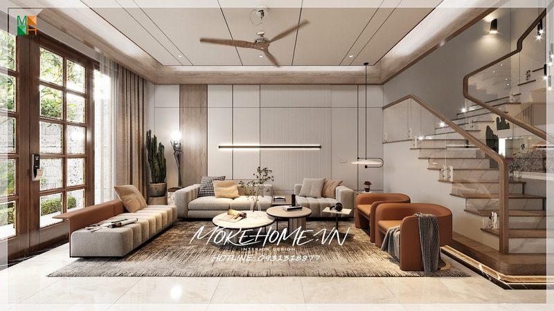 Màu nâu từ lâu đã được biết đến như một biểu tượng của sự ấm áp và gần gũi, mang lại cảm giác an toàn và bình yên cho không gian sống. Trong phòng khách, màu nâu không chỉ làm nổi bật vẻ đẹp tự nhiên mà còn tạo ra môi trường thư giãn hoàn hảo cho những buổi sum họp gia đình hay tiếp khách. Khi kết hợp với các gam màu sáng như trắng, vàng nhạt hay xanh lá cây, màu nâu có khả năng tạo nên sự cân bằng tuyệt vời giữa nét hiện đại và cổ điển.
